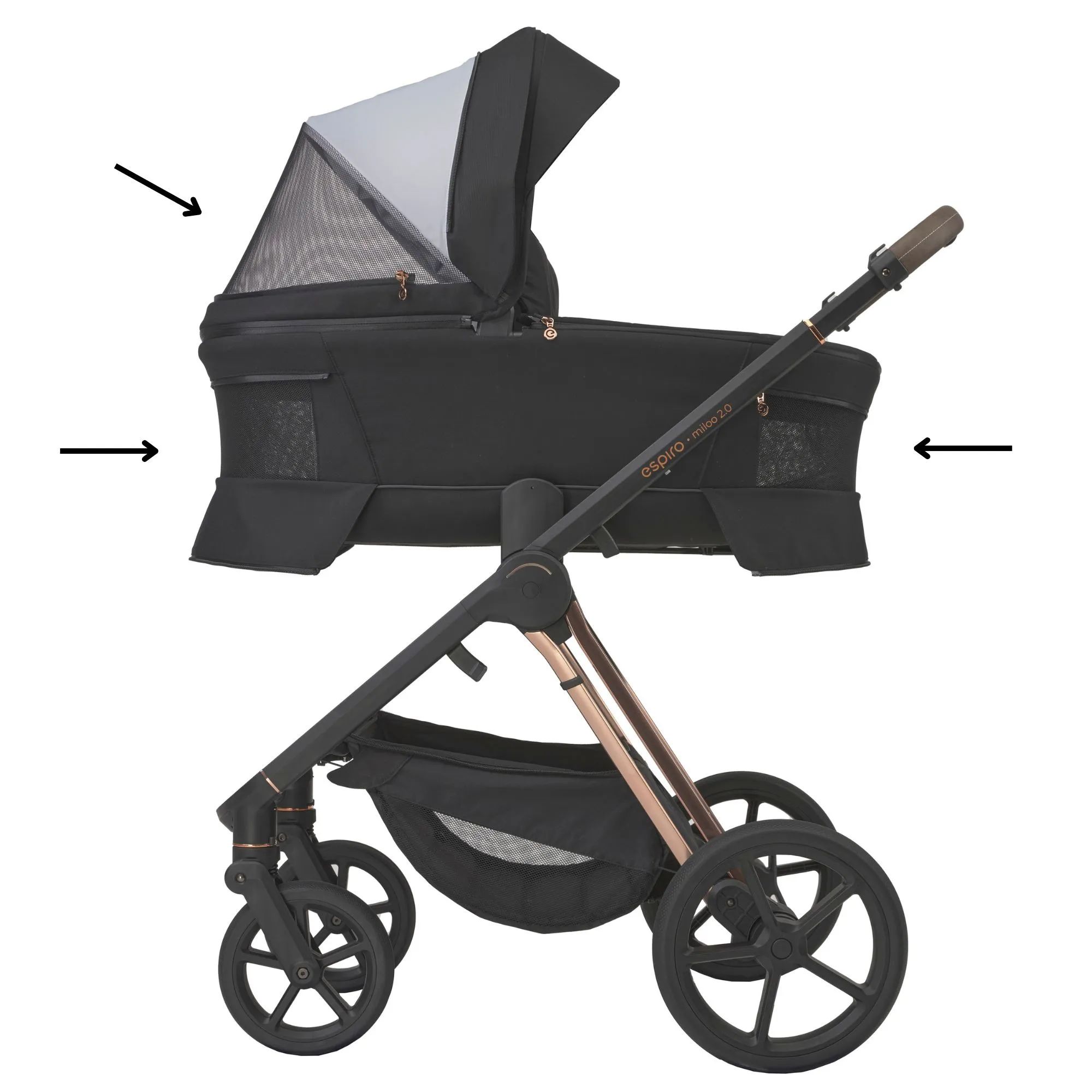 Espiro Miloo 2.0 Diamond Black to elegancki wózek dziecięcy premium, który łączy funkcjonalność, bezpieczeństwo i ponadczasowy styl, zapewniając komfortowe spacery od pierwszych dni życia dziecka.