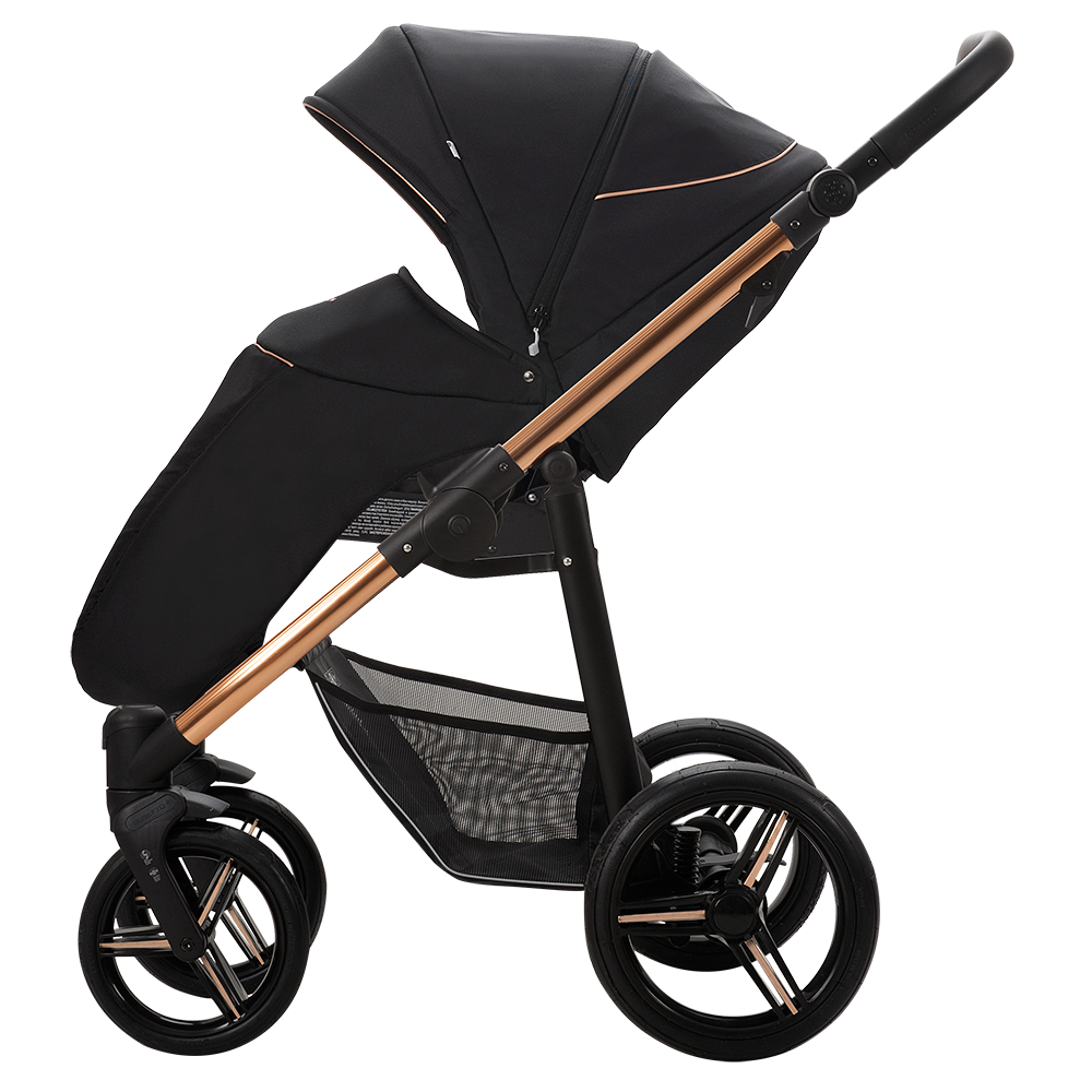 Wszystkie koła są łożyskowane, pompowane, posiadają możliwość blokady, a przednie obrotowe kółka mają system pamięci toru jazdy i absorpcji wstrząsów. Ponadto jednopunktowy hamulec blokuje oba tylne koła na raz. Regulacja twardości zawieszenia zapewnia dziecku komfortowe warunki podczas spaceru, 3-stopniowa regulacja oparcia i podnóżka daje dziecku wygodę niezależnie od sytuacji. Siedzisko w zależności od potrzeby można montować przodem i tyłem do kierunku jazdy.