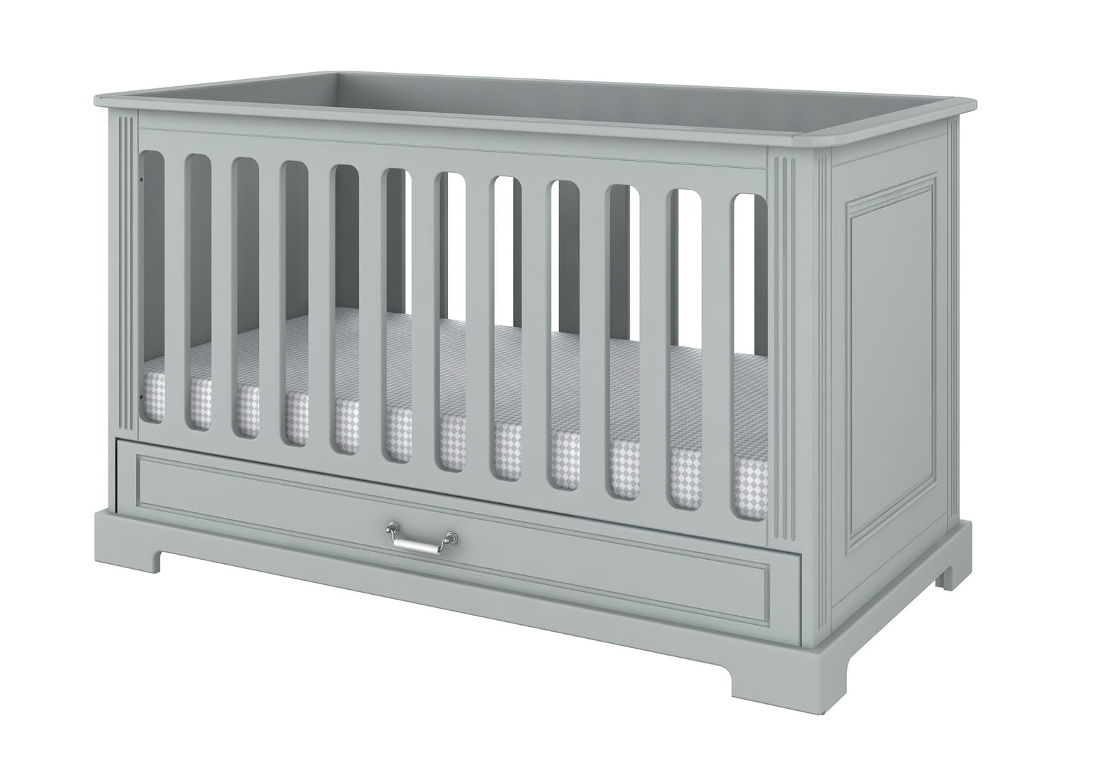 Dzięki klasycznemu wzornictwu i subtelnej kolorystyce (biały lub szary), łóżeczko Ines doskonale wpisuje się w wystrój zarówno nowoczesnych, jak i tradycyjnych pokoików dziecięcych.