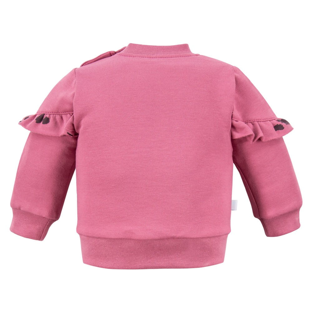 Różowa dziewczęca bluza z ciepłej dresówki w kolorze jagodowym. Posiada urocze falbanki na rękawach. Bluza jest bardzo ciepła, idealnie sprawdzi się zimą!div>