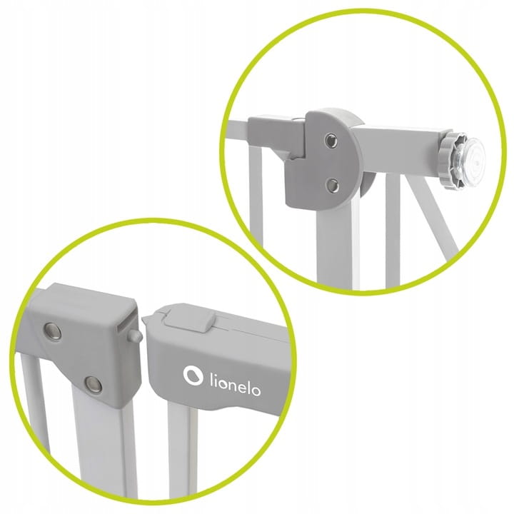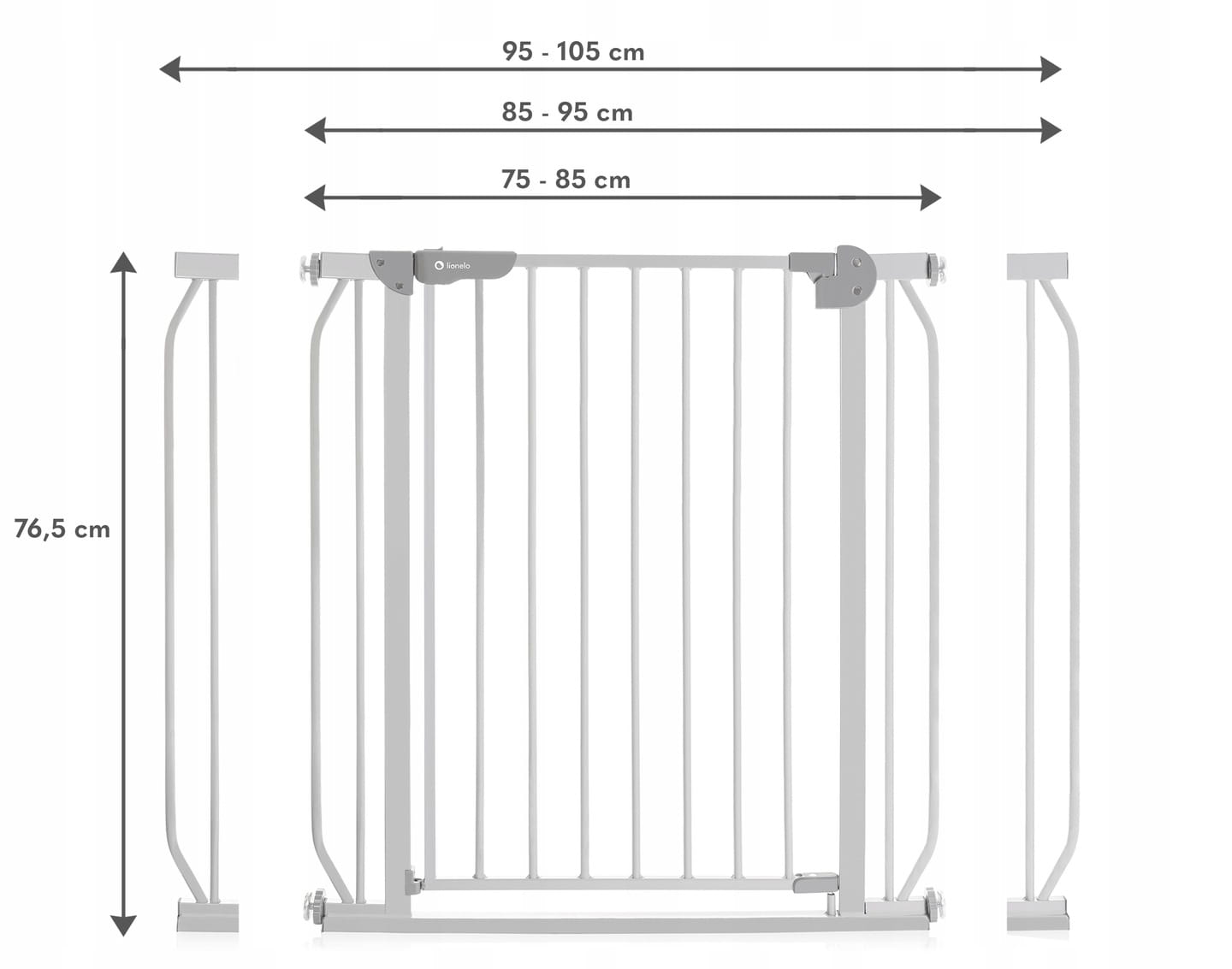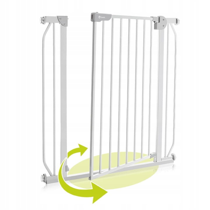 Uniwersalne wymiary - Szeroki zakres od 75 do 85 cm pasuje do większości standardowych framug. Specjalna nakładka umożliwia przedłużenie barierki aż do 105 cm. Po dołożeniu dodatkowego rozszerzenia bramkę można stosować również w celu zabezpieczenia schodów.