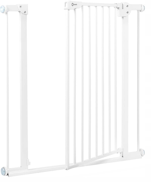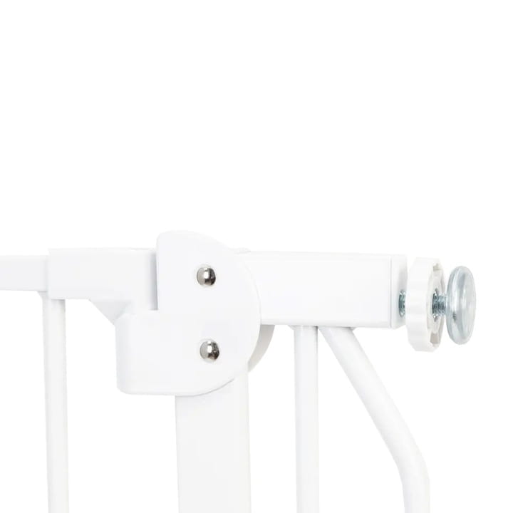 Uniwersalne wymiary - Szeroki zakres od 75 do 85 cm pasuje do większości standardowych framug. Specjalna nakładka umożliwia przedłużenie barierki aż do 105 cm. Po dołożeniu dodatkowego rozszerzenia bramkę można stosować również w celu zabezpieczenia schodów.