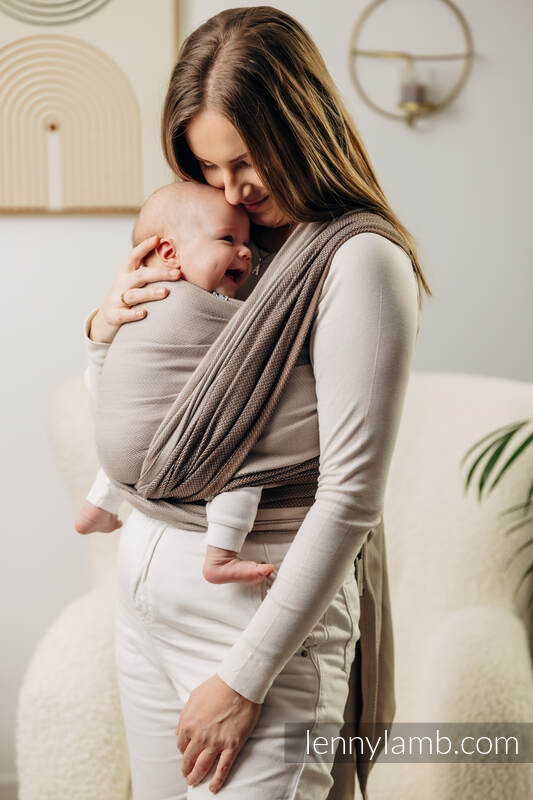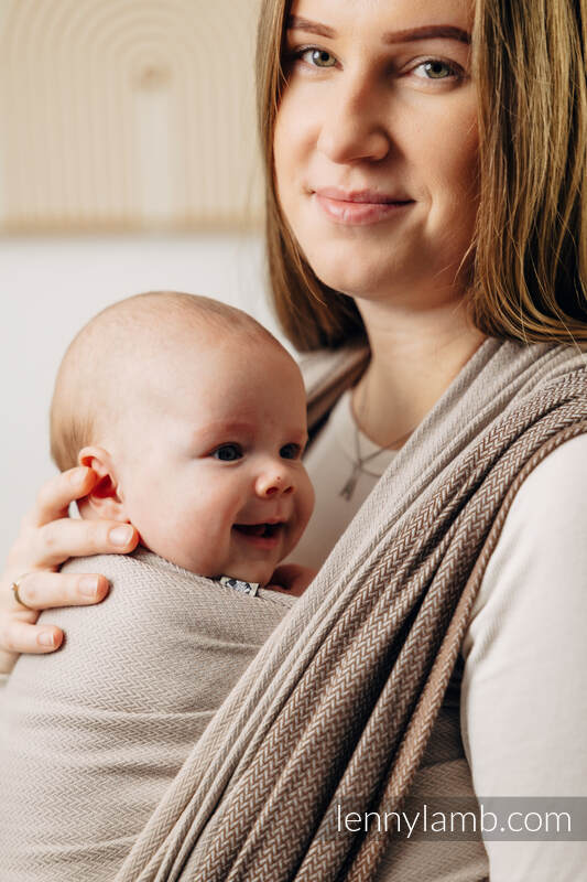 Chusta tkana marki LennyLamb to produkt wykonany z wysokogatunkowej bawełny, utkany splotem jodełkowym. Dzięki temu materiał jest miękki, elastyczny i jednocześnie wytrzymały, co zapewnia komfort zarówno rodzicowi, jak i dziecku.