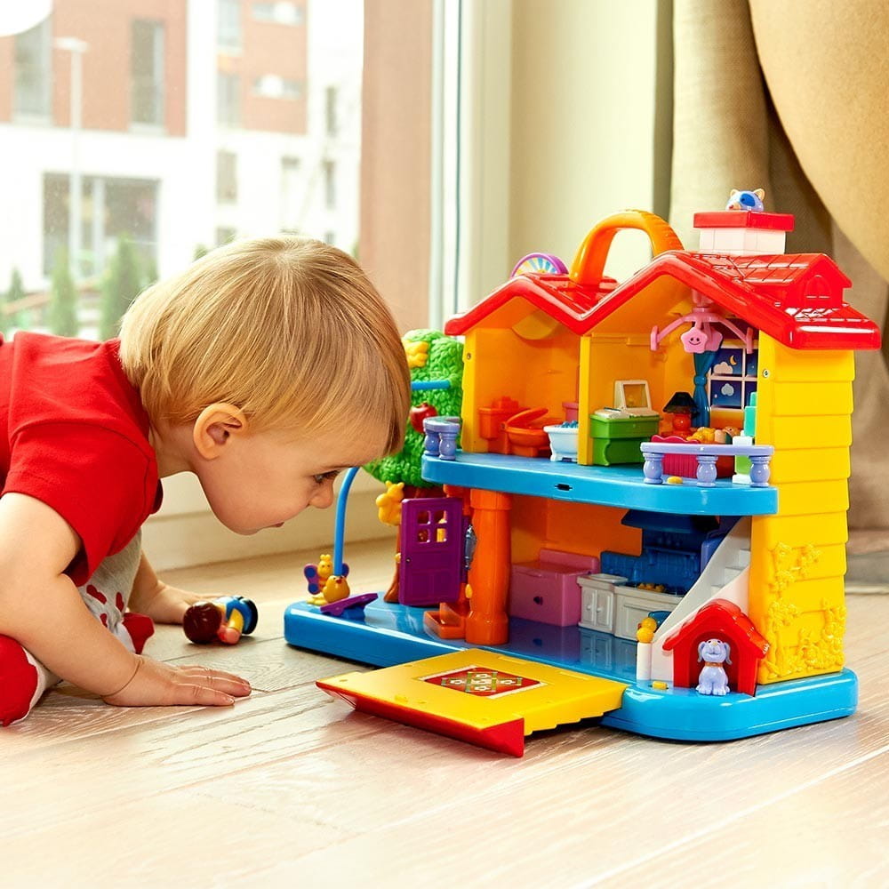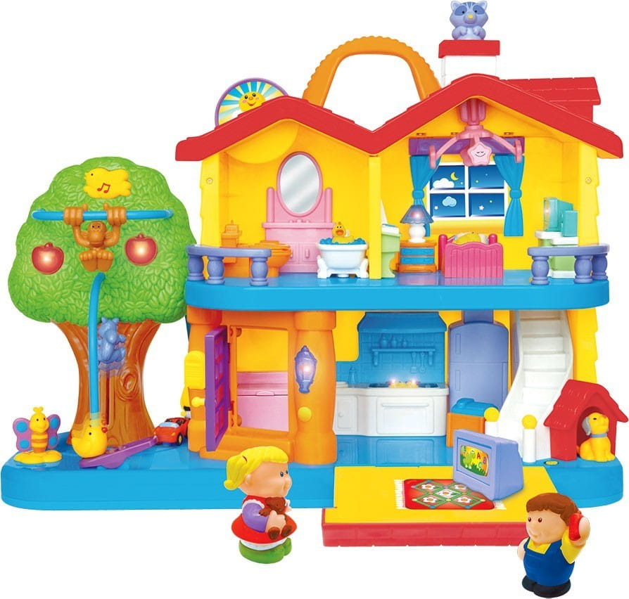 Ten wielobarwny odkrywczy domek kryje w sobie mnóstwo rymowanek i realistyczne dźwięki codziennych domowych przedmiotów. Zabawka ta ma celu zapoznanie malucha z codziennym domowym życiem i zwyczajami panującymi w każdym domu. Zabawka kryje w sobie wiele niespodzianek - drzwi skrzypią, dzwoni telefon, pralka i kuchenka wydają realistycznie brzmiące odgłosy, a po przełączeniu trybu maluch słyszy zabawne rymowanki.