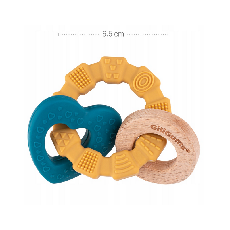 - Materiał: Gryzak jest wykonany z bezpiecznego silikonu i naturalnego drewna bukowego, co stanowi ukłon w stronę natury i ekologii.