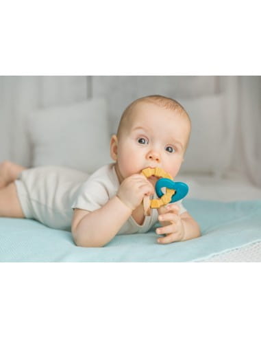 - Naturalne materiały: Wykonany z bezpiecznych i naturalnych materiałów, gryzak jest wolny od substancji chemicznych i dodatków.
