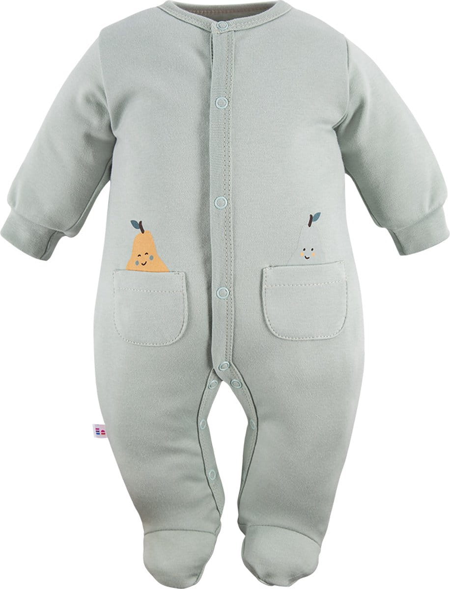 EWA Pajac Perfect Kieszeń Ziel 68 Pajac wykonany z wysokiej jakości materiałów, w kolorze zielonym, z kieszenią na przedzie. Idealny na każdą porę roku, zapewnia komfort i wygodę dla maluszka. Przeznaczony dla dzieci w wieku około 6-9 miesięcy.