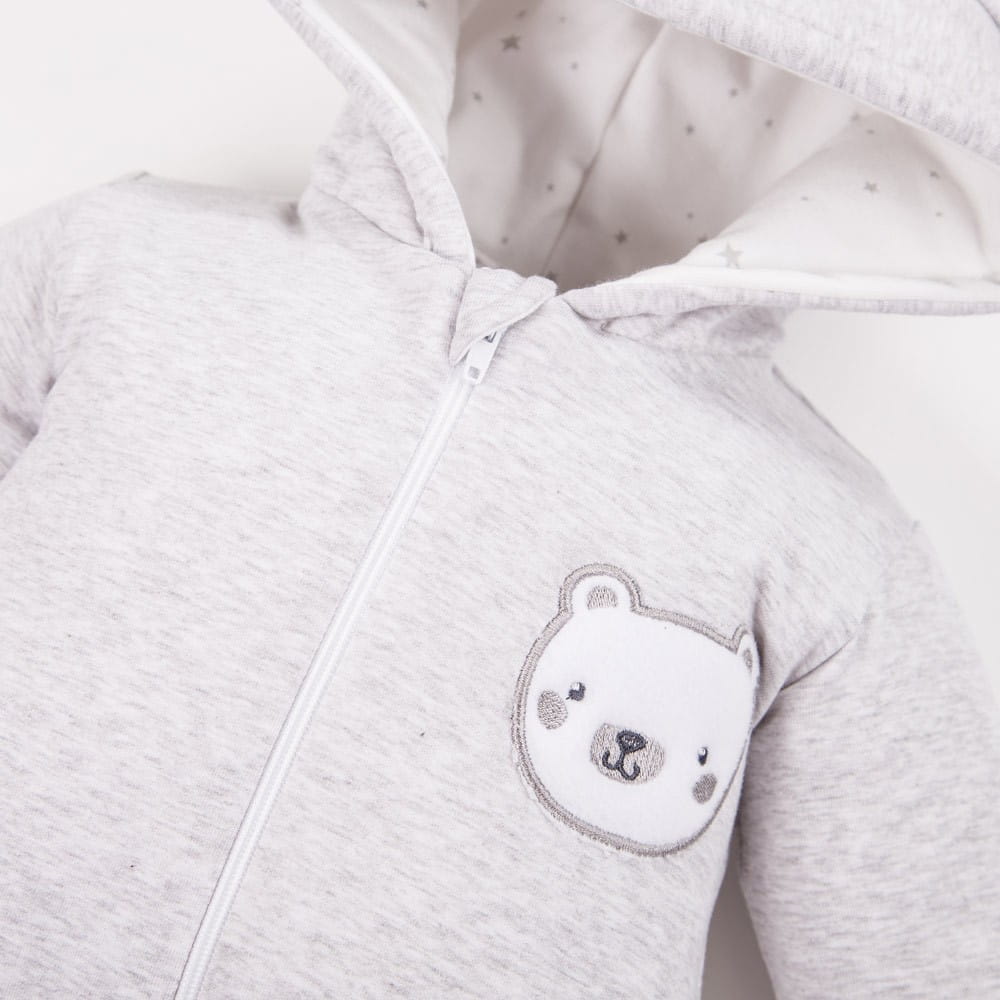 Eevi kombinezon na wiosnę bawełniany niemowlęcy z kapturem szary 62