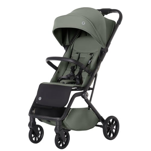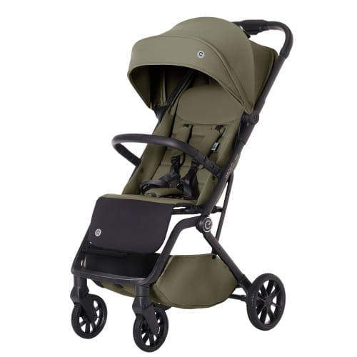 Spacerówka została wyposażona w płynną regulację oparcia za pomocą pasków, która umożliwia ustawienie wygodnej pozycji — od siedzącej po półleżącą. Regulowany podnóżek zwiększa komfort podczas drzemek.