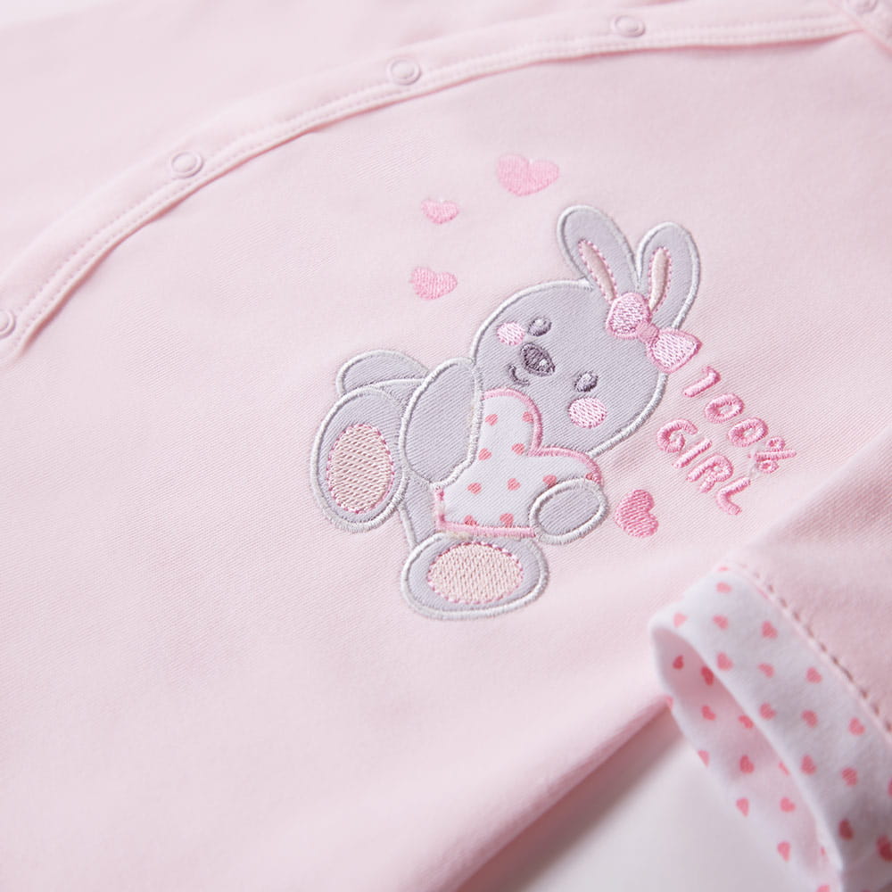 Pajac z kolekcji "Newborn" uszyty z miękkiej i przyjemnej w dotyku dzianiny, przełamanej drukami. Z przodu znajduje się haft wesołego zwierzątka, zabezpieczony od wewnątrz, tak aby nie podrażniał delikatnej skóry dziecka. Krój umożliwia całkowite rozpięcie, przez co ubranko jest funkcjonalne i wygodne. Wykończony miękką lamówką. Rękawki zakończone są mankietami drukowanymi w delikatny wzór. Napki użyte w naszych wyrobach nie zawierają niklu. Wyprodukowany w Polsce, posiada certyfikat "Bezpieczny dla dziecka". 100% bawełna