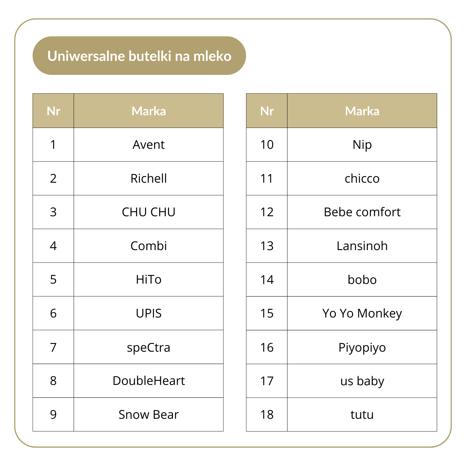 Podgrzewacz posiada adaptery, umożliwiające podgrzewanie pokarmu w dowolnych butelkach dostępnych na rynku. Dzięki adapterom jest kompatybilny z butelkami dla dzieci wszystkich wiodących marek.