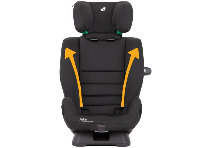 Praktyczne funkcje: Fotelik posiada boczne skrzydła AutoAdjust™, które poszerzają się wraz z podnoszeniem zagłówka, dostosowując się do wzrostu dziecka. Zawiera również niestandardowy schowek na 5-punktową uprząż, umożliwiający przechowywanie jej podczas korzystania