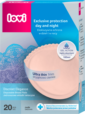LOVI WKLADKI LAKTACYJNE DISCREET BEŻOWE Beżowe wkładki laktacyjne, zapewniające dyskretną ochronę dla karmiących mam. Wkładki są wysoce chłonne, zapobiegają przeciekaniu mleka i chronią ubrania przed zabrudzeniem. Miękka, oddychająca tkanina sprawia, że są wygodne w noszeniu przez cały dzień.