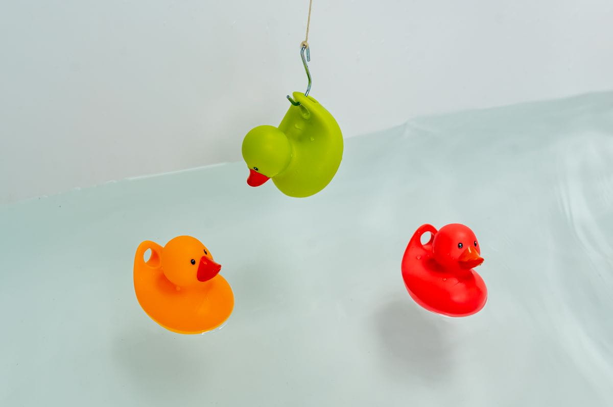 Kaczka bez dziurki wyklucza powstawanie pleśni, grzybów oraz innych drobnoustrojów, co sprawia że zabawka jest higieniczna. Wędka zakończona jest metalowym, bezpiecznym haczykiem.