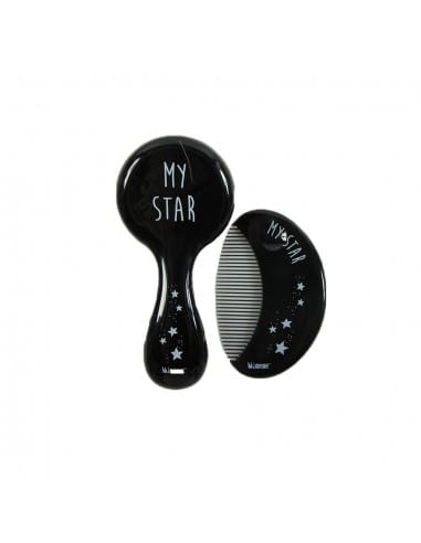 MINENE Zestaw pielęgnacyjny szczotka i grzebień (kolory: czarny, niebieski, różowy, biały) Zestaw pielęgnacyjny Minene, zawierający szczotkę i grzebień, dostępny w różnych kolorach (czarny, niebieski, różowy, biały). Miękka szczotka delikatnie masuje skórę głowy, a grzebień pomaga rozczesywać włoski. Bezpieczny i ergonomiczny design. Idealny dla dzieci od urodzenia.
