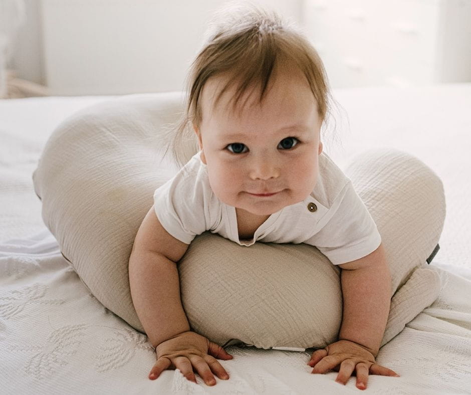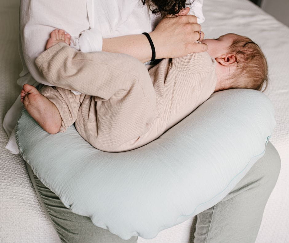 Przyjemny w dotyku muślin i miękkie wypełnienie Rogala Yoonco sprawiają, że oboje mogą przyjąć komfortową pozycję, dzięki czemu karmienie przebiega sprawnie i spokojnie.