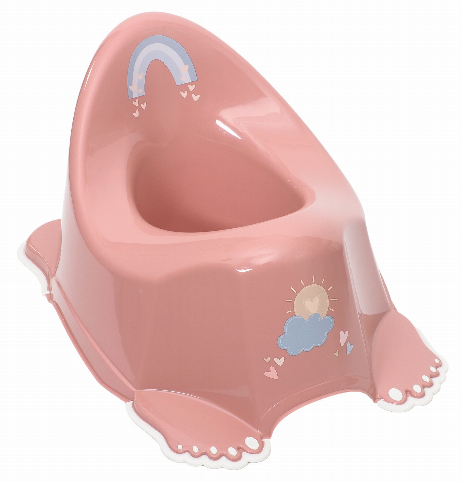 Nocnik antypoślizgowy METEO różowy Nocnik antypoślizgowy METEO w kolorze różowym to funkcjonalny i bezpieczny produkt dla dzieci uczących się korzystania z toalety. Wyposażony w antypoślizgowe elementy, zapewnia stabilność i komfort użytkowania. Ergonomiczny kształt wspiera prawidłową postawę, a atrakcyjny design zachęca maluchy do samodzielności.