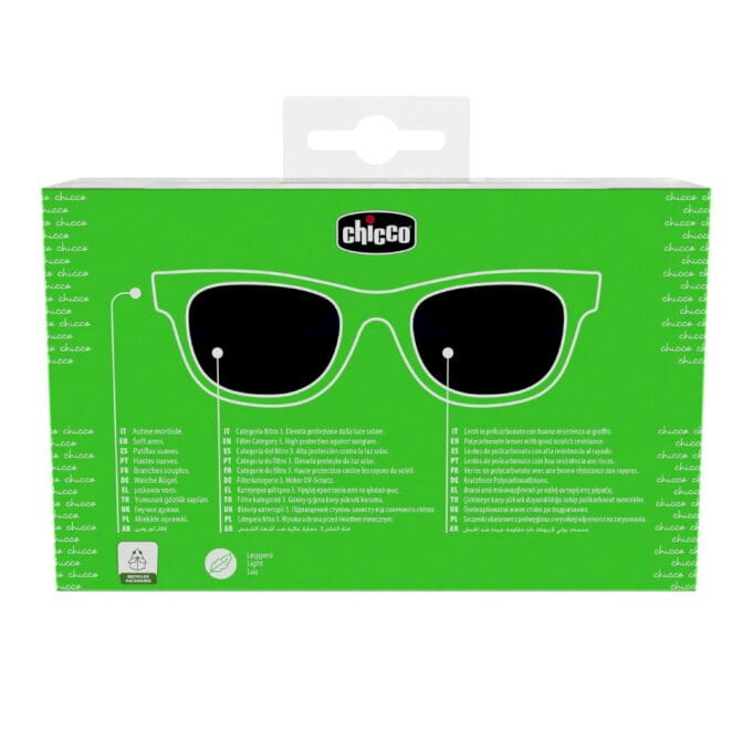 Okulary przeciwsłoneczne Chicco zapewniają 100% ochrony przed promieniami słonecznymi UVA, UVB i UVC