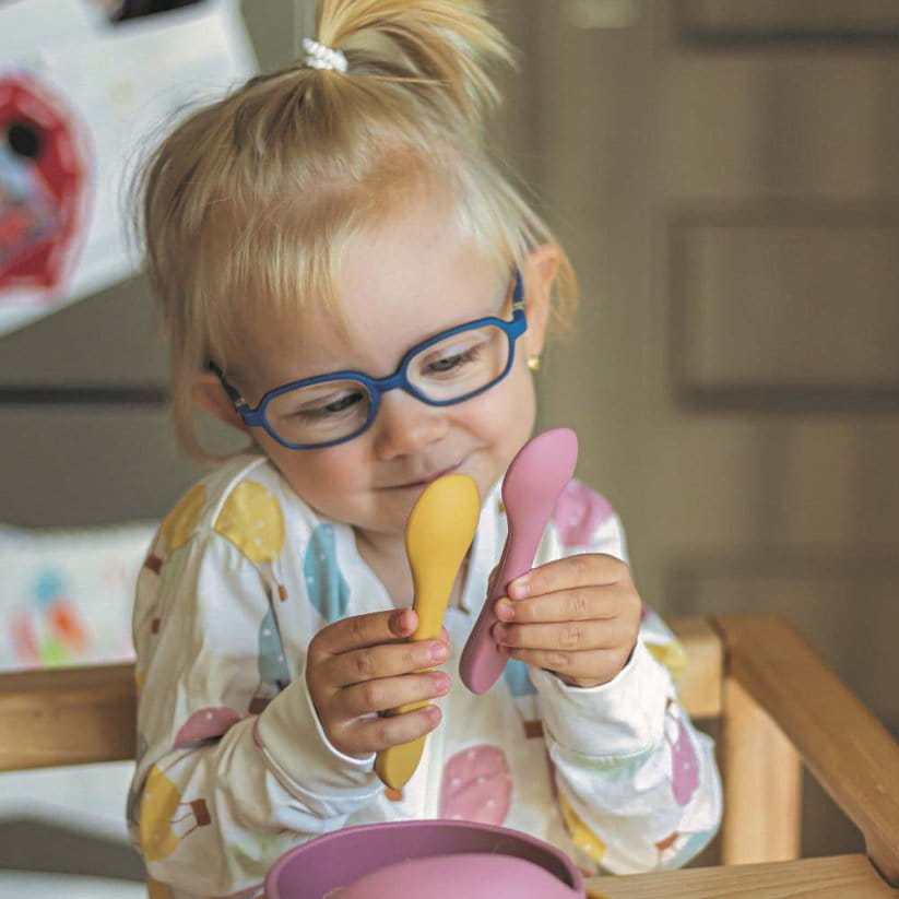 - Ergonomiczna konstrukcja: Zaokrąglone kształty i niewielkie rozmiary ułatwiają dziecku nabieranie i spożywanie pokarmu.