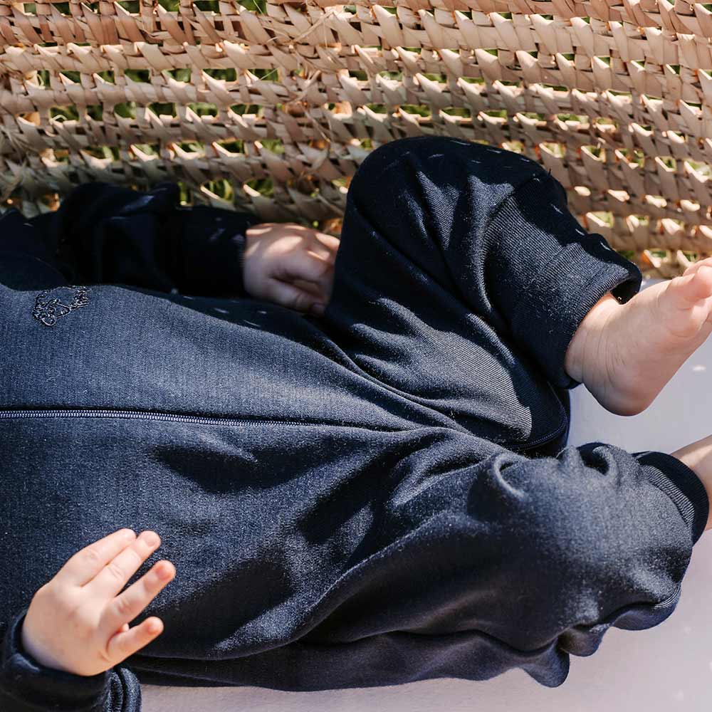 Pajac z wełny merino rosnący z dzieckiem granatowy