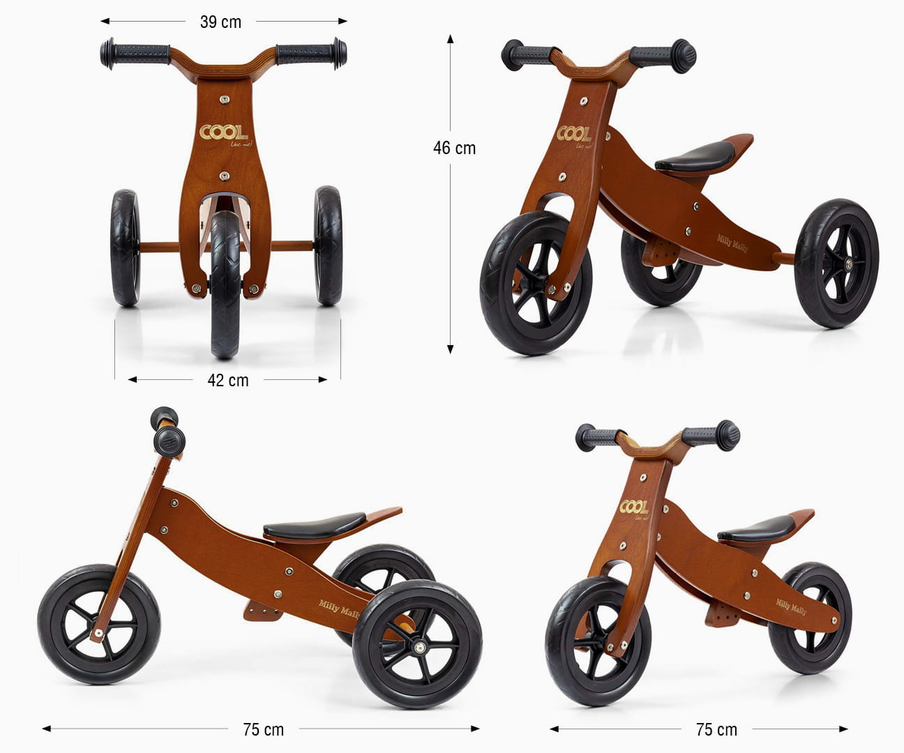 - dwufunkcyjność (rowerek trójkołowy lub dwukołowy)
