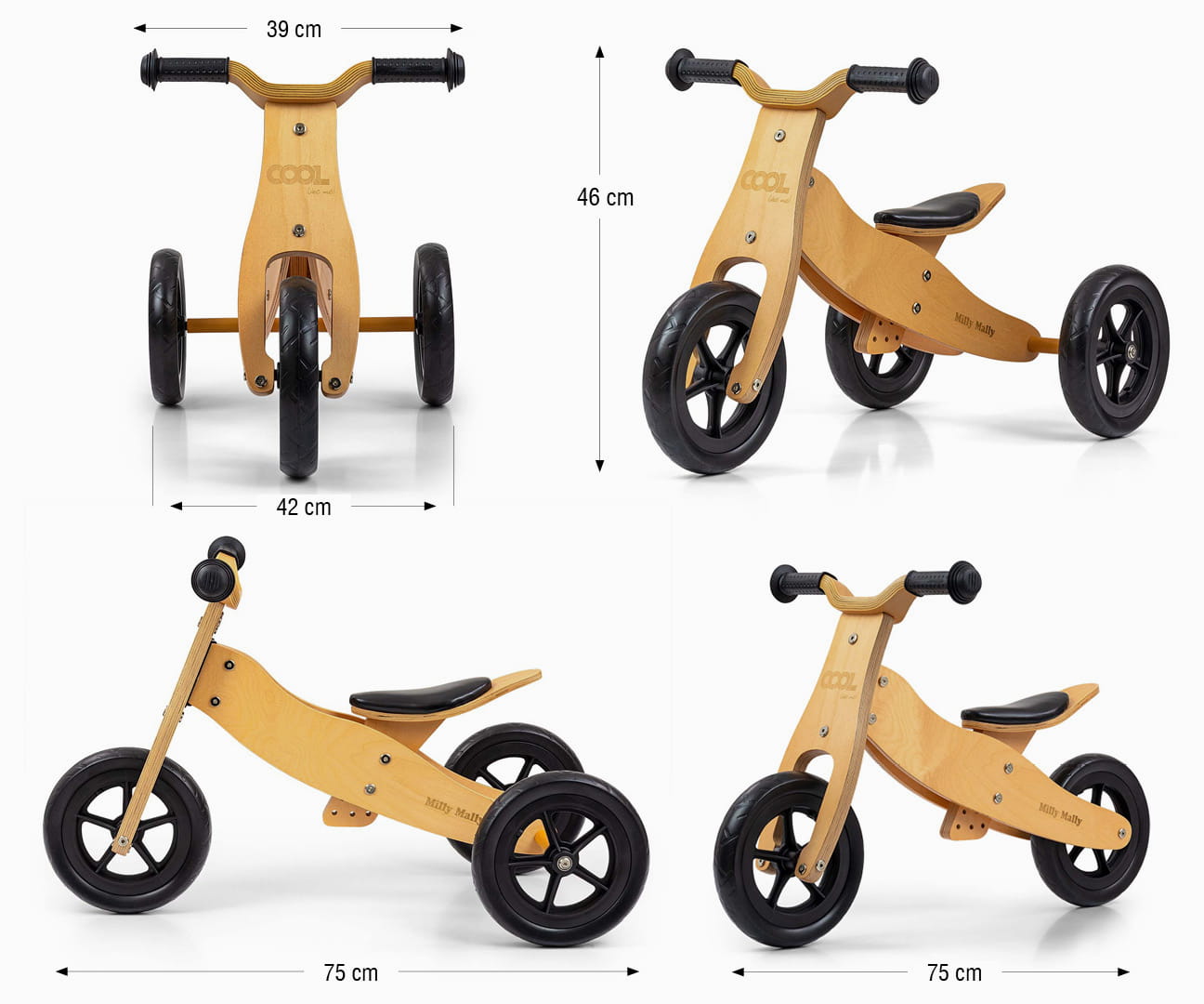 - dwufunkcyjność (rowerek trójkołowy lub dwukołowy)
