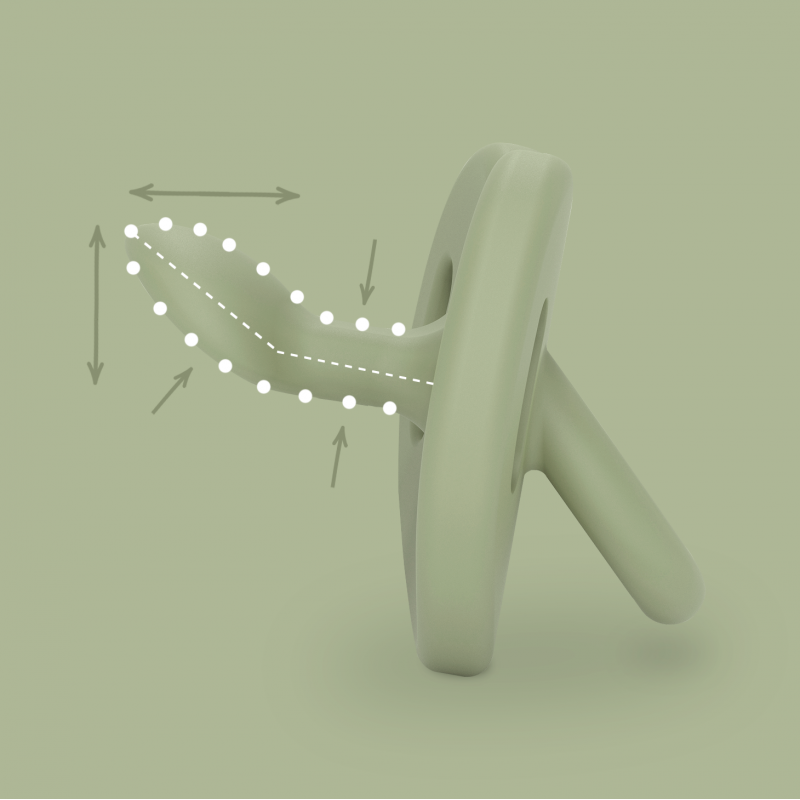 Smoczek z łatwością dopasowuje się do podniebienia, zostawiając językowi wystarczającą ilość miejsca.