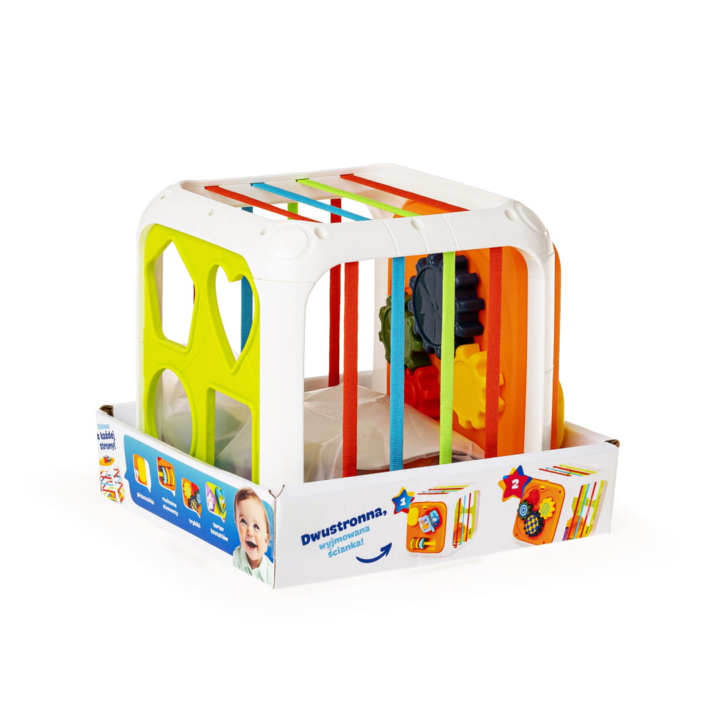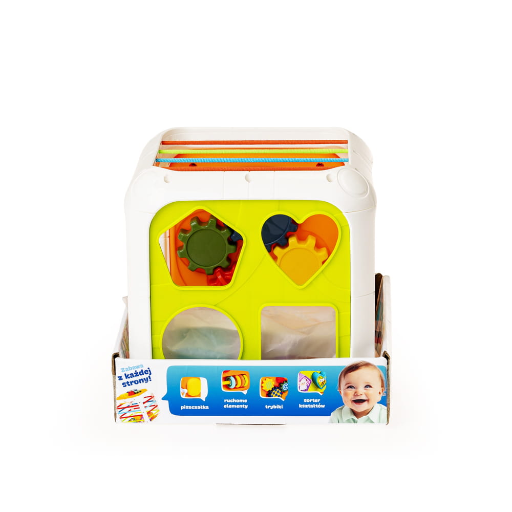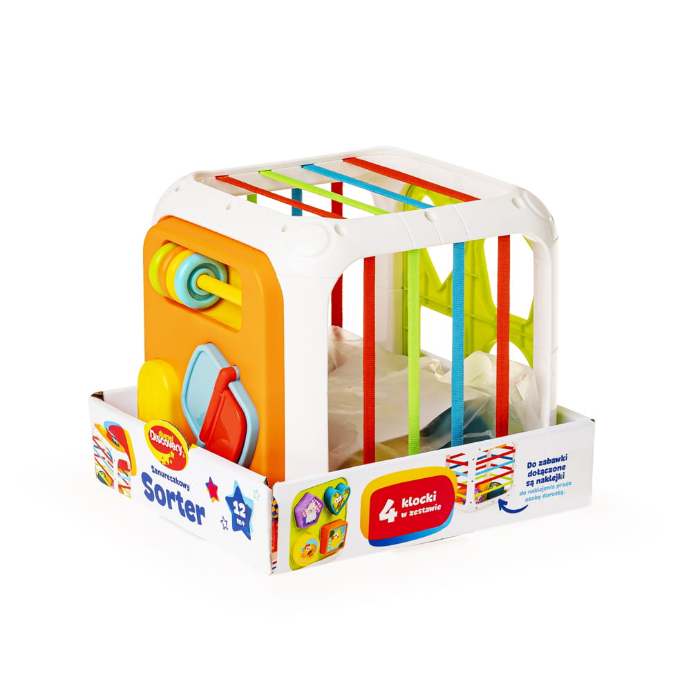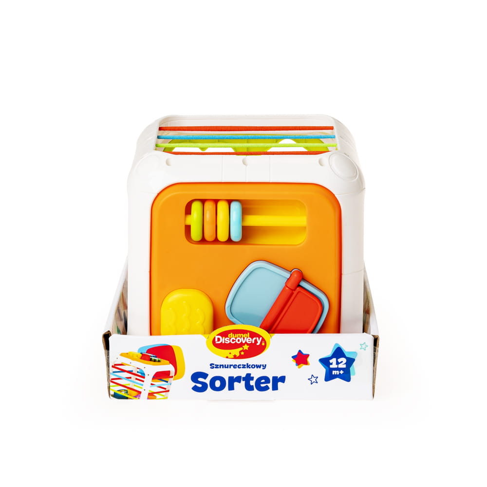 Sznureczkowy Sorter to wielofunkcyjna kostka aktywizująca, stworzona z myślą o najmłodszych odkrywcach. Łączy zabawę ze wspieraniem rozwoju motoryki, koordynacji oraz logicznego myślenia. Kolorowe elementy zachęcają do eksplorowania, a różnorodne funkcje sprawiają, że zabawka szybko staje się ulubionym towarzyszem codziennej zabawy.