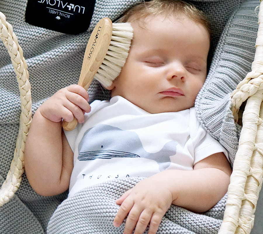 Szczotka do włosów została wykonana z naturalnego włosia, dostosowana do bardzo delikatnej skóry głowy maluszka. W łagodny sposób masuje dziecięcą główkę. Doskonale relaksuje i wycisza dziecko.