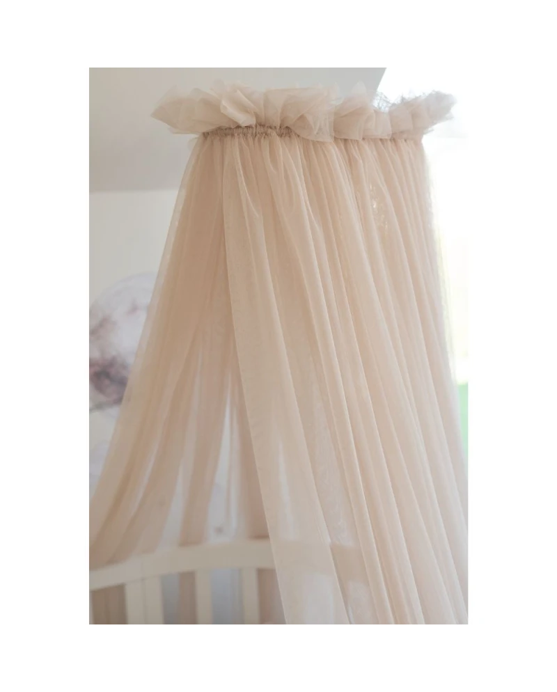 WALDIN Tiulowy baldachim do łóżeczka Beż+ stelaż na baldachim