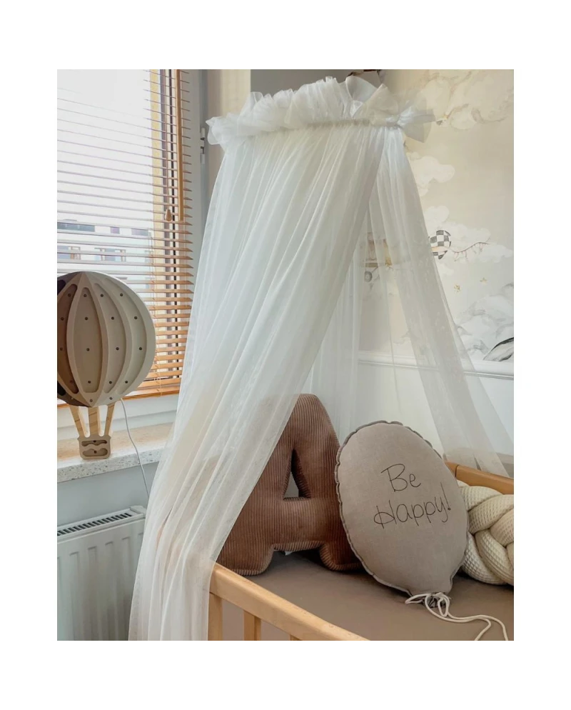 WALDIN Tiulowy baldachim do łóżeczka Ecru+ stelaż na baldachim