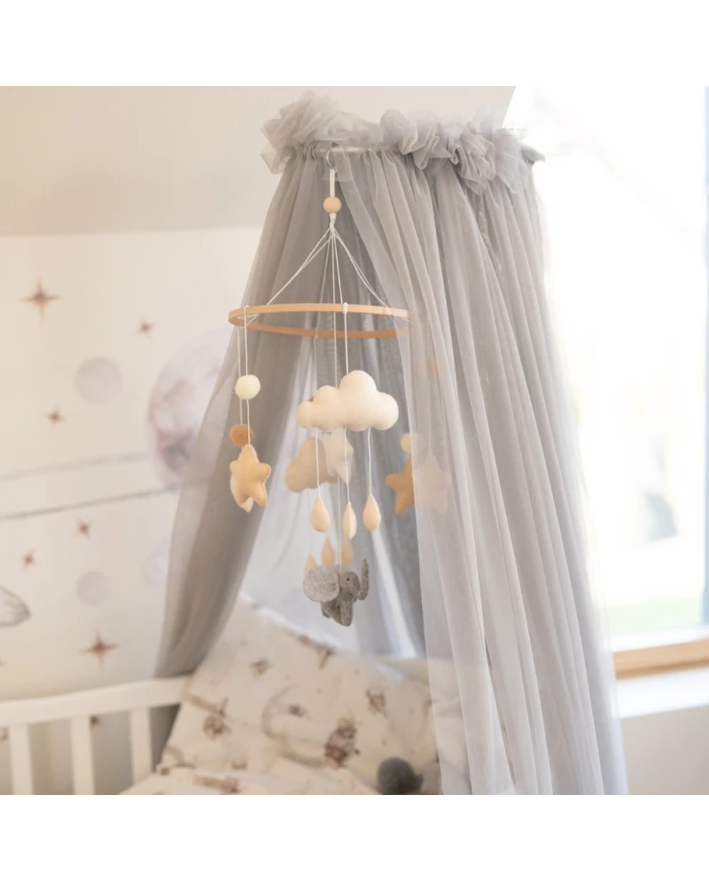 WALDIN Tiulowy baldachim do łóżeczka Szary + stelaż na baldachim