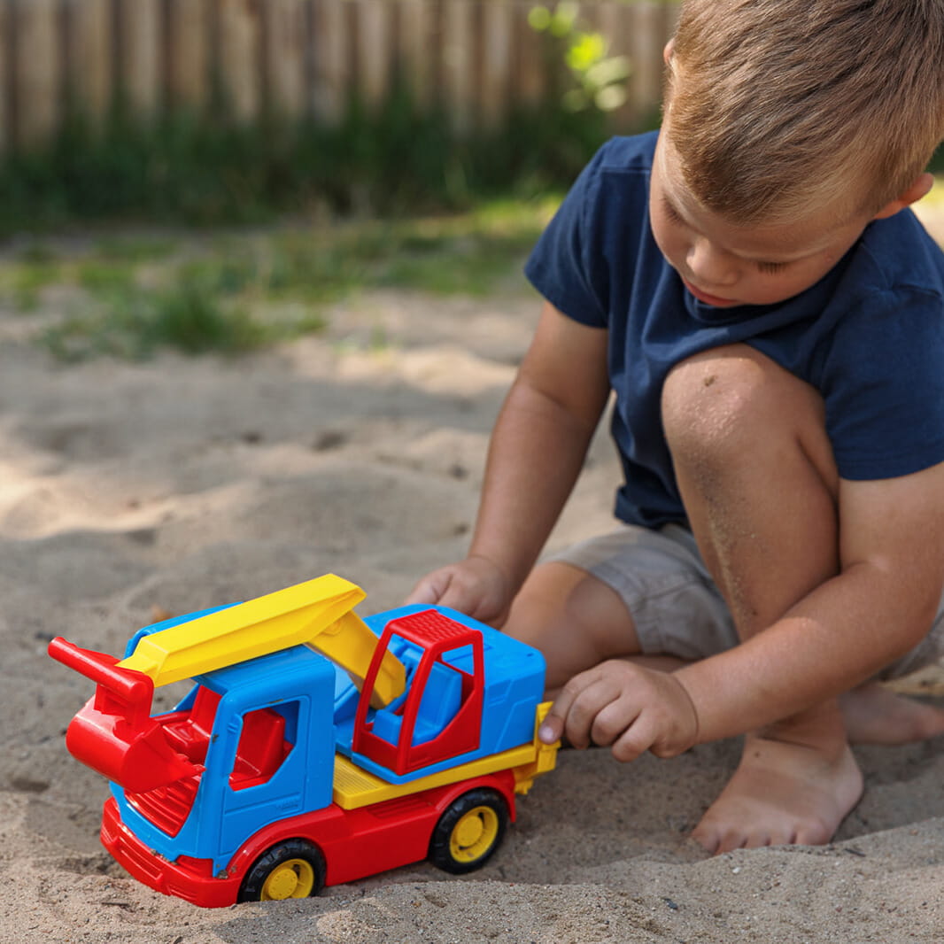 Koparka Tech Truck to wyjątkowy pojazd z serii Tech Truck, który pozwala najmłodszym odkryć świat maszyn budowlanych i pracy na placu budowy. Lekka, zwrotna i trwała konstrukcja o długości 27 cm wykonana została z bezpiecznego tworzywa odpornego na warunki atmosferyczne. Koparka posiada ruchome ramię i łyżkę, obracaną podstawę z kabiną operatora oraz stabilizujące podpory, które ułatwiają realistyczną zabawę w kopanie, przenoszenie i ładowanie materiałów. Ta kolorowa zabawka rozwija motorykę, koordynację, logiczne myślenie i kreatywność, ucząc dziecko zasad działania prawdziwych maszyn i pobudzając jego wyobraźnię.