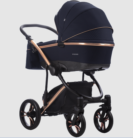 To wózek, który jest stworzony z najwyższą troską o każdy detal. Stelaż wykończony na wysoki połysk (Aluminium High Gloss) oraz dno gondoli pokryte folią o strukturze karbonu sprawiają, że prezentuje się on naprawdę ekskluzywnie. Gondola została wykończona atrakcyjnym aluminiowym profilem, co stanowi unikalny dodatek do wózka.