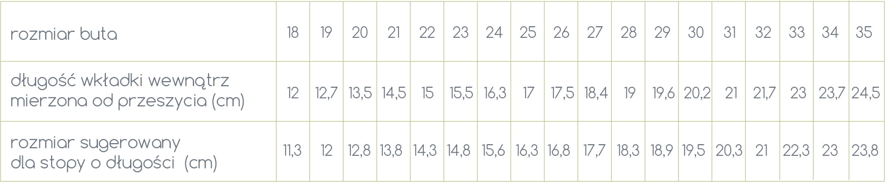 Prosimy o wybranie rozmiaru na podstawie poniższej tabeli: