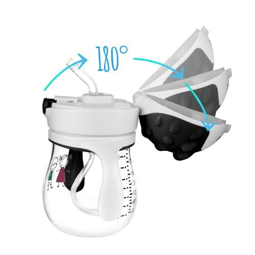 Został wyposażony w giętką słomkę z odważnikiem pozwalającą na picie pod każdym kątem. Doskonale sprawdzi się w domu, jak i na spacerze lub podczas podróży dzięki szczelnemu zamknięciu.